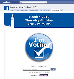 However, going by what I've been following intermittently on Facebook all day, there's a healthy amount of people who have actually said they've voted. I logged in this morning at 9.30am to find the Facebook prime real estate newsfeed 1st position asking me if I'd voted and having clicked yes (keen bean me, 0745am!) it displayed a counter....